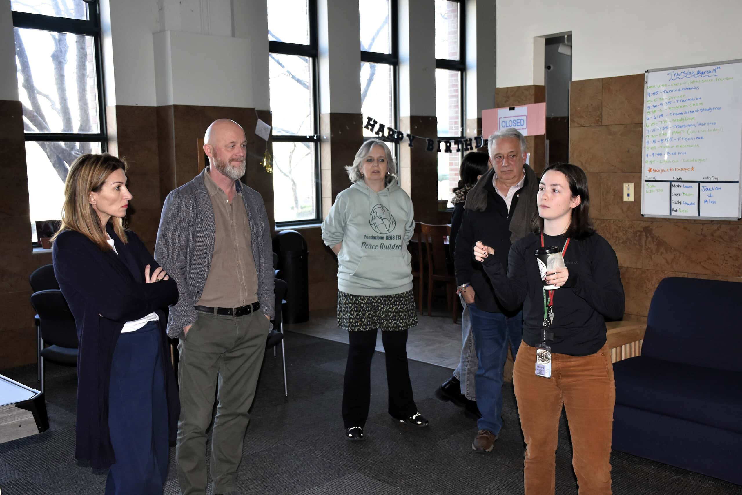 The Italian visitors brought cookies to share as the Mercy Home coworkers welcomed the group with an introductory presentation, offering insight into the mission and daily work. One by one, attendees introduced themselves, sharing their names, roles, and the paths that brought them into the field. Among them was Mercy Home President & CEO Fr. Scott Donahue, whose remarks moved many of the visitors. For many of them, it was their first time in the United States.