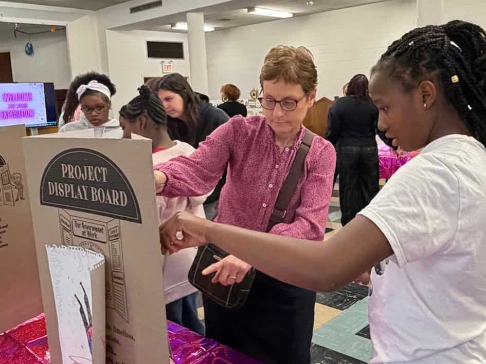 Sandy Pudar, a guest of Lyons and a producer at CBS2 Chicago was impressed by the support that our young people gave to one another. Likening the environment to the all-girls Catholic high school she attended, Pudar said “being here tonight really brought back those memories of having a support group of girls.” She said she was impressed and inspired by “how they leaned on each other and helped each other through their presentations.”