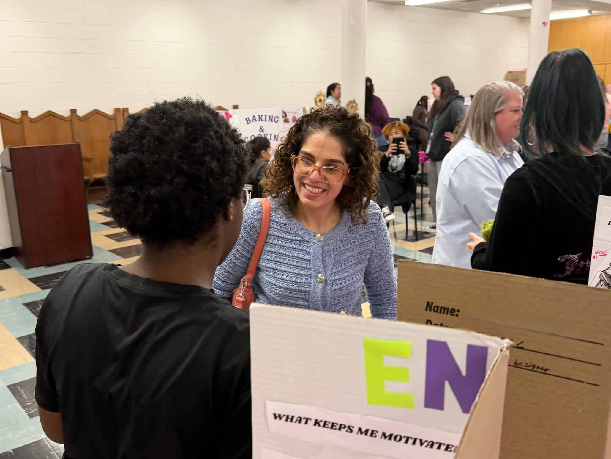 Alex, for example, displayed a board in which she showcased her goal of becoming a therapist. “I wanted to be there for people who are going through a lot,” she said, before enumerating the steps needed to reach her goal, including earning a master’s degree in counseling. “I envision a future where I never doubt I could succeed,” she said, adding that what keeps her motivated is “knowing that I will be able to help others overcome their struggles.”
