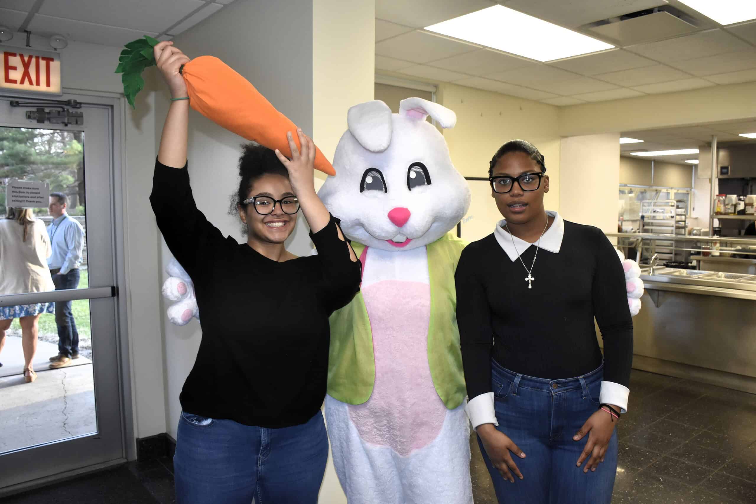 Following Fr. Scott’s reflection, everyone dug into a delicious Easter meal of chicken, ham, potatoes, veggies, rolls, and desserts. Youth living at our girls home even enjoyed a visit from the Easter Bunny and the annual the Easter egg hunt. The front lawn of the girls home was strewn with hundreds of colorful eggs packed with candy. Everyone had a great time collecting the hidden treasures, and several young people were especially lucky, having found the coveted golden eggs that could be traded in for special gifts.