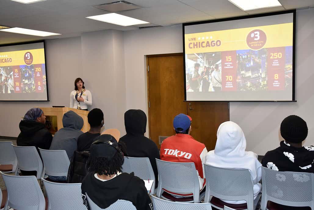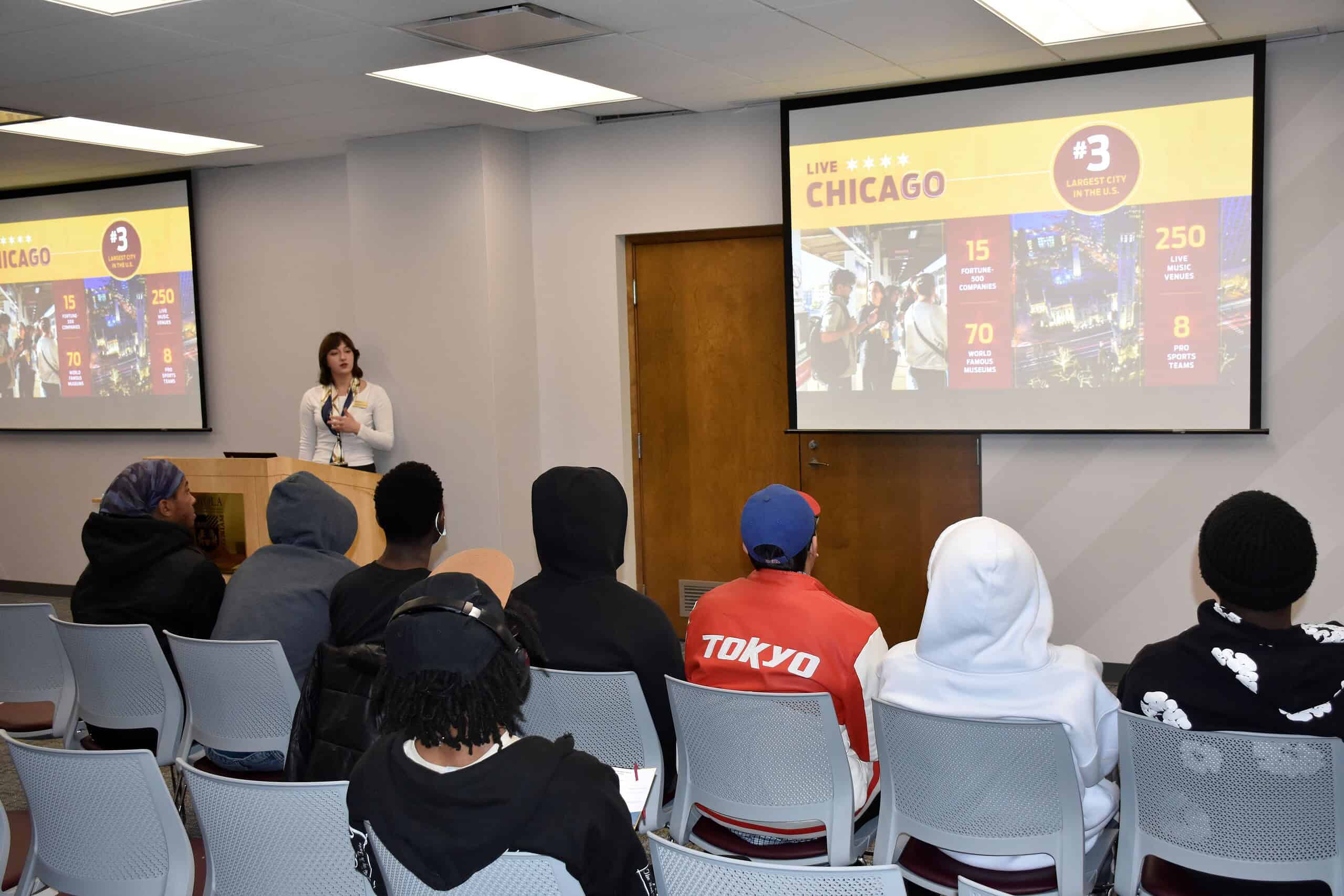 At UNITE HERE Chicago Hospitality Institute at McCormick Place, the young people were introduced to a free culinary and hospitality training program designed to prepare people for careers in the industry.