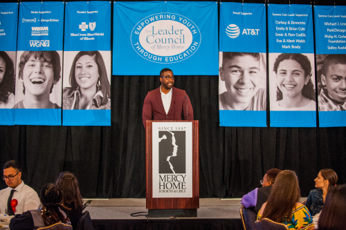 A video was then shown about one of our former residents, Reggie, who shared the story of how he found stability and success because of his time at our Home. Reggie then took the stage in person to look back at his life’s journey since Mercy Home and his own youth keynote speech at the Graduates Luncheon in 2008.